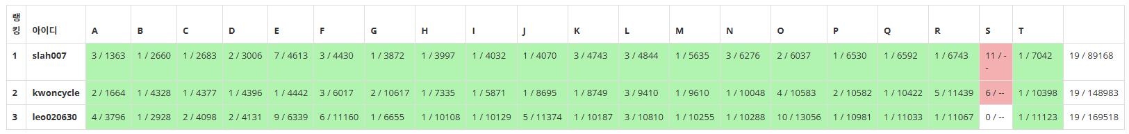 하지만 저때가 딱 3월. 아직 나에겐 6개월의 시간이 남아있었고, 지금부터라도 빡세게 달려보자고 팀원들과 얘기를 한 후, 3명 다 PS 폐관수련을 하기로 했다. 일주일 동안 쓸 문제를 뽑고, 안 푼 사람은 문제당 벌금을 지불하는 방식으로 진행을 했다. 그렇게 몰라몰라 수련법이 시작되고...